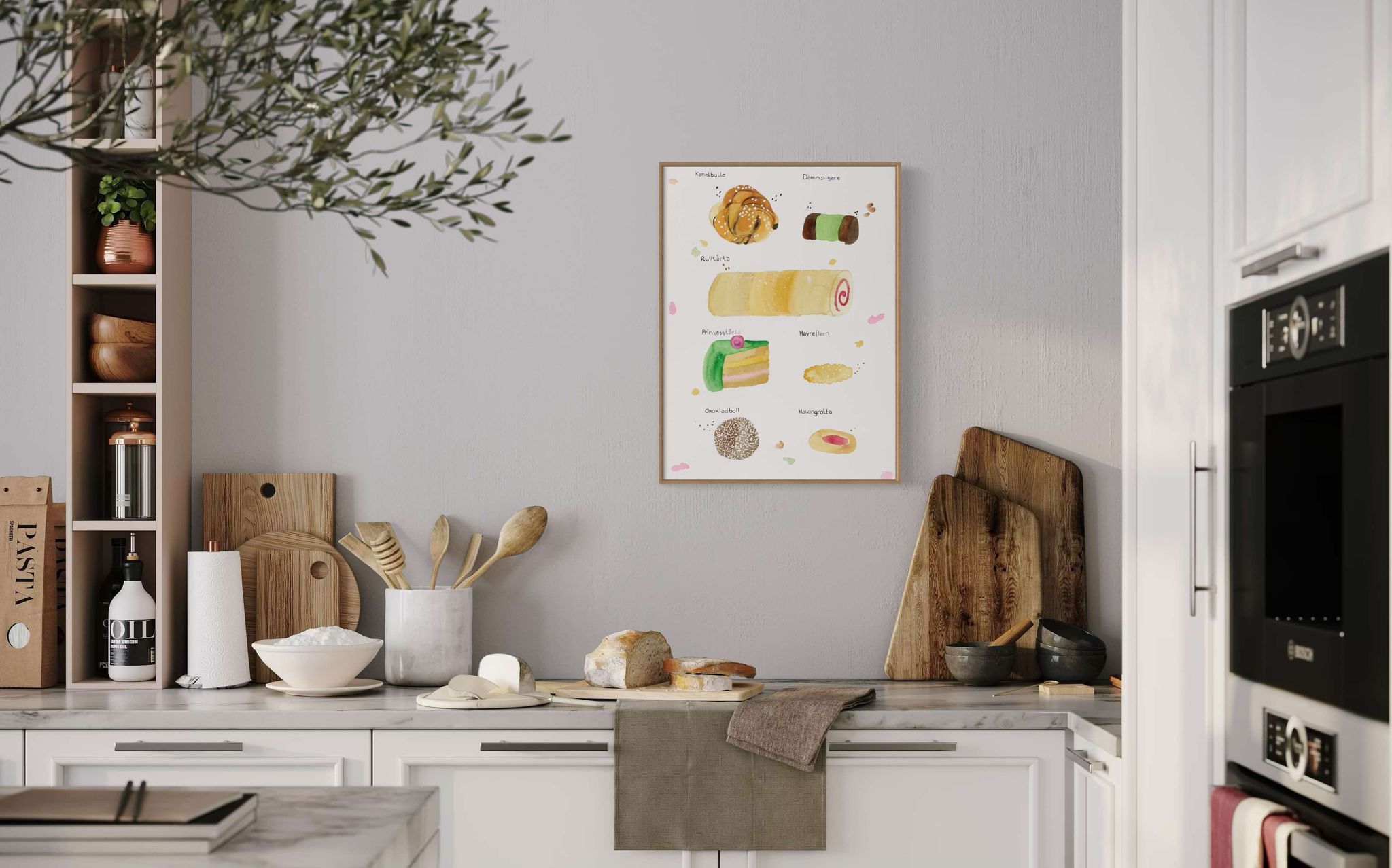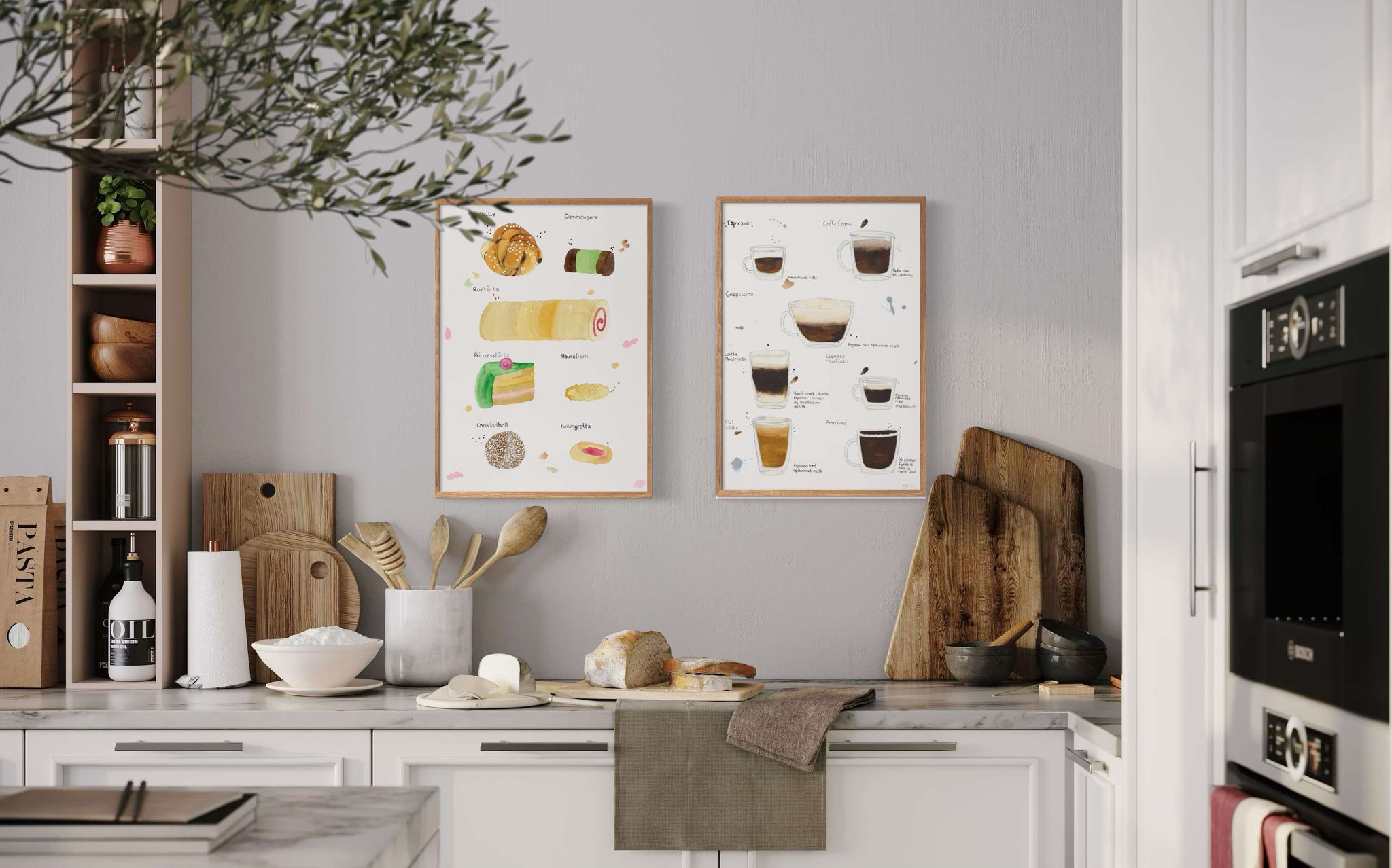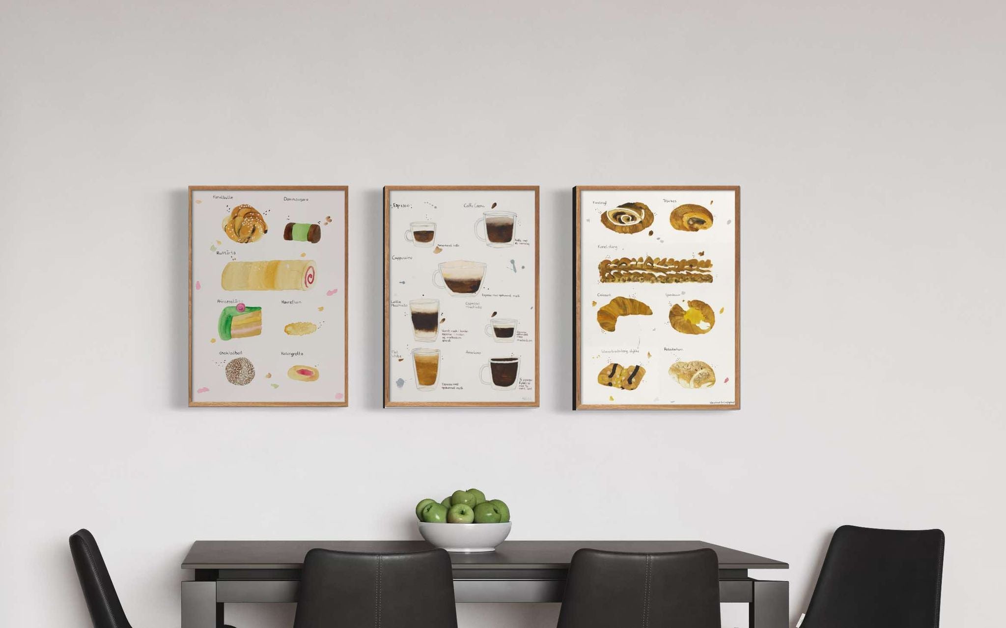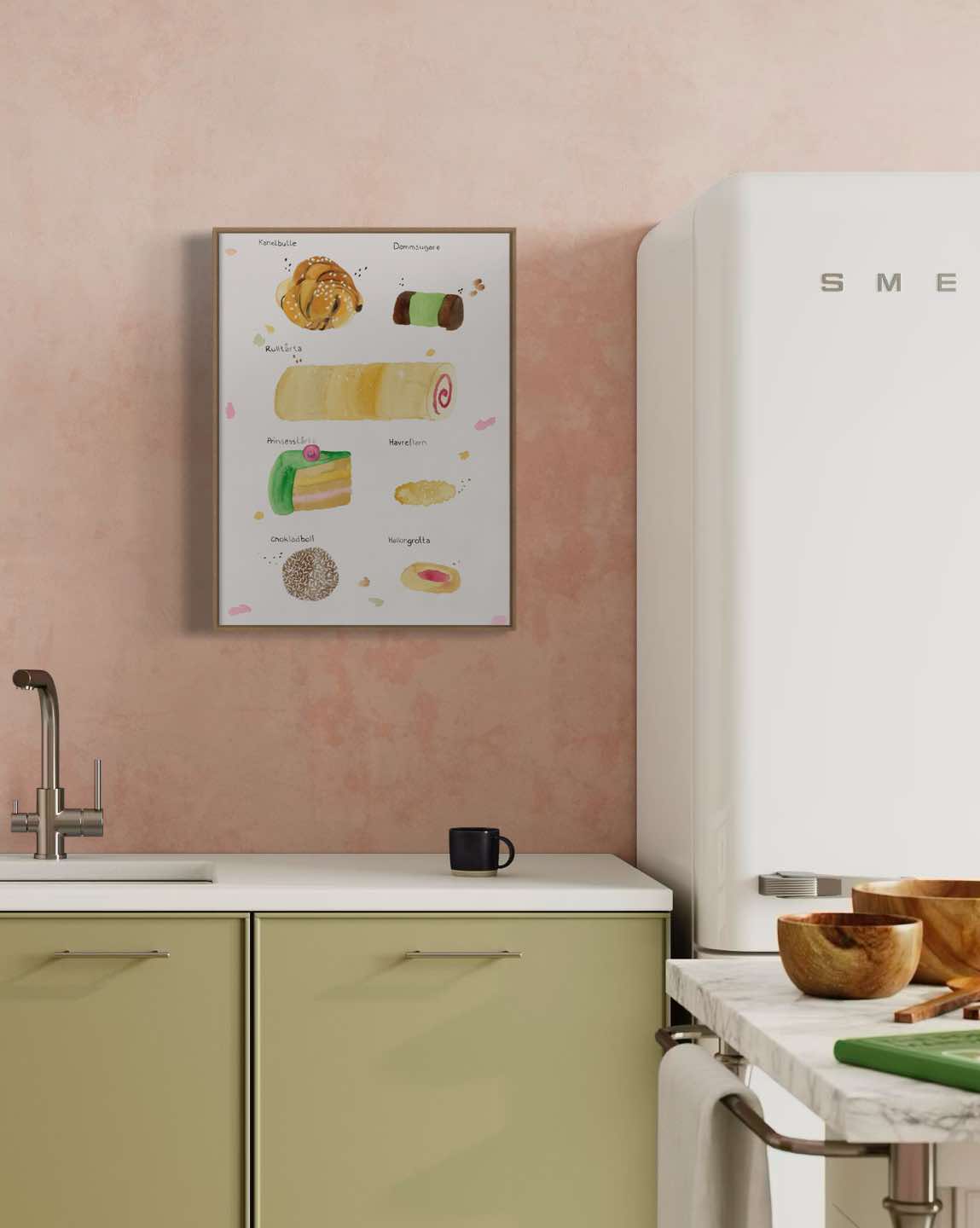 Hvem elsker ikke Fika? Jeg har malet denne fika plakat, da jeg ihvertfald elsker eftermiddagshygge med lidt lækkert. Fika plakaten hænger vældig fint for sig selv, men er også smuk sammen med kaffe plakaten og wienerbrødsplakaten. Hvis du er på udkig efter smukke køkkenplakater, er disse tre et godt bud. Akvarel køkkenplakaterne kan også hænge smukt på en plakatvæg i stuen eller entreen.